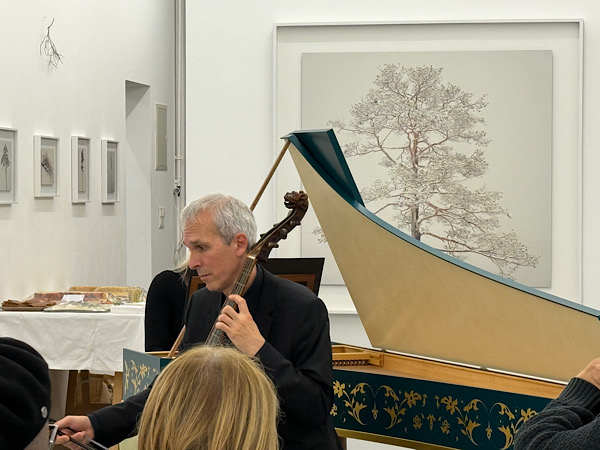 Die Unbelichtete Nächte verleiten einen zum Träumen über den letzten Ausflügen und verpassten Möglochkeiten, diese Momente selbst zu suchen und beobachten, wie die NAcht abkühlt. Diese Blickwinkel sieht man sonst auf Fotografien nicht , weil man nicht, wie der Künstler für das Foto eine Nacht an einer Stelle irgendwo in den Berner Bergen oder im brasilianischen Urwald bei dem Iquazu Wasserfällen stehen möchte. Wenige Tage später besuchen wir die Ausstellung zum Program mit dem Künstler zur wunderbarer barocken Musik mit einem uraltem, knarzig klingendem original 7 String bass Viola (ist das der richtige Name?) und einem ganz jungem Cemballo.